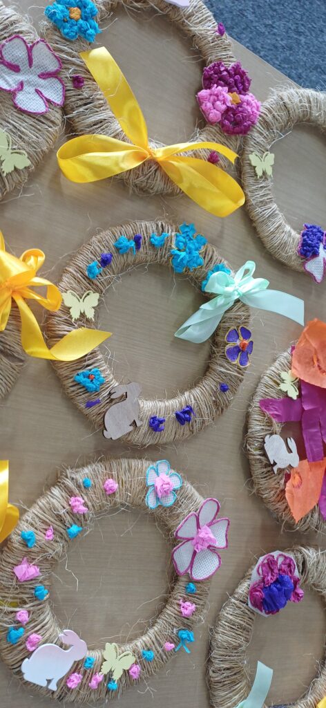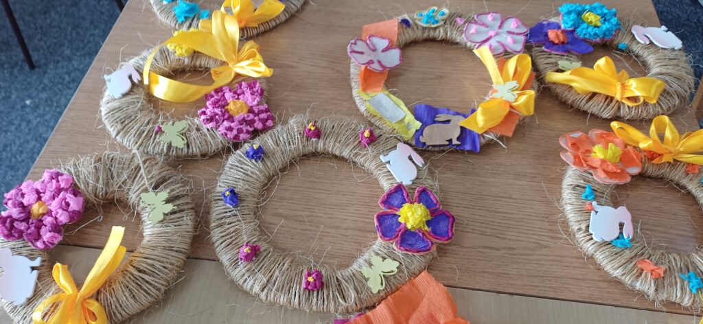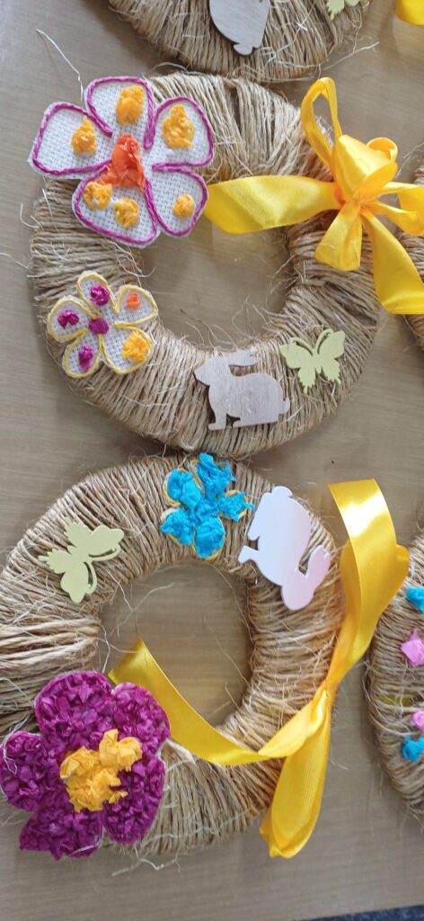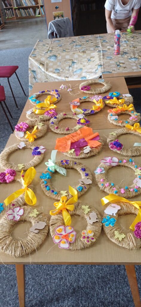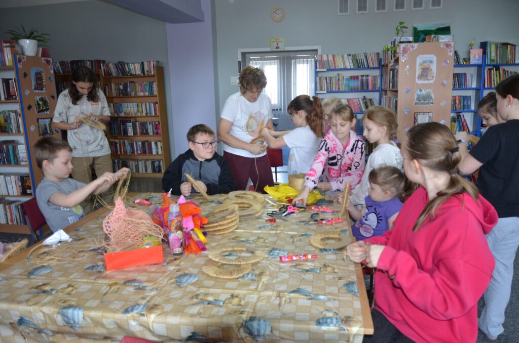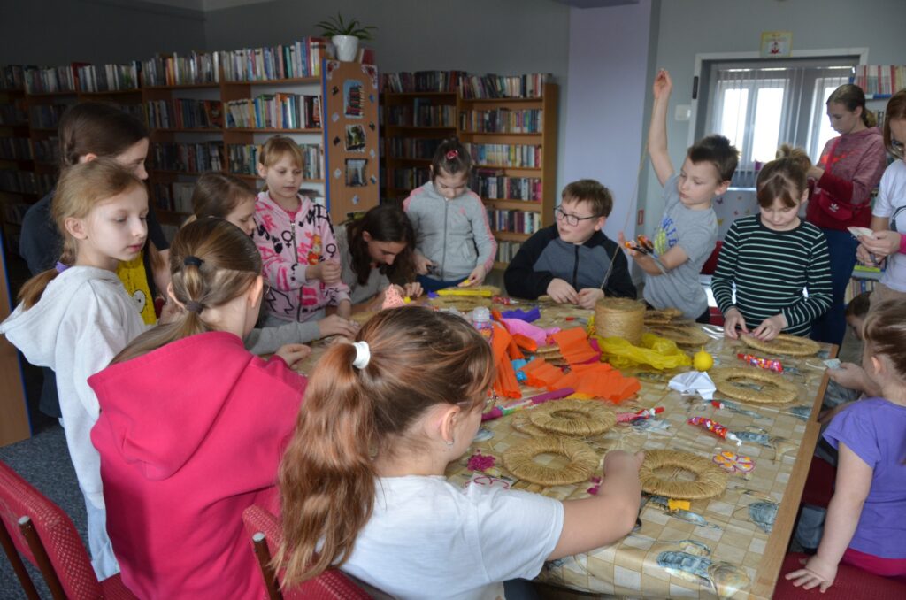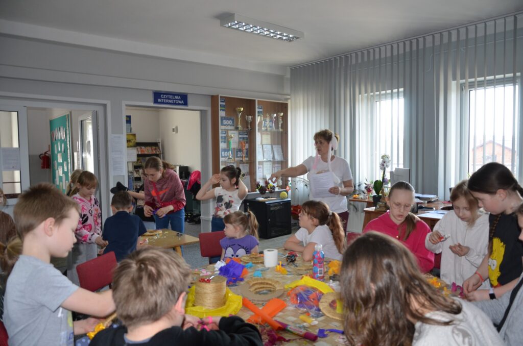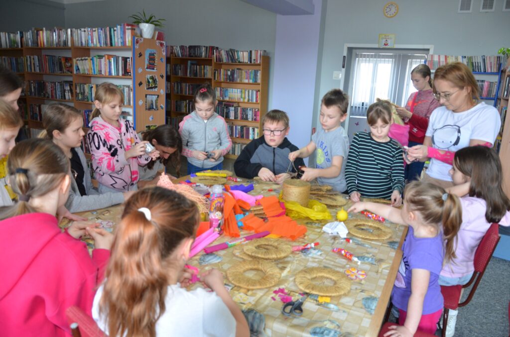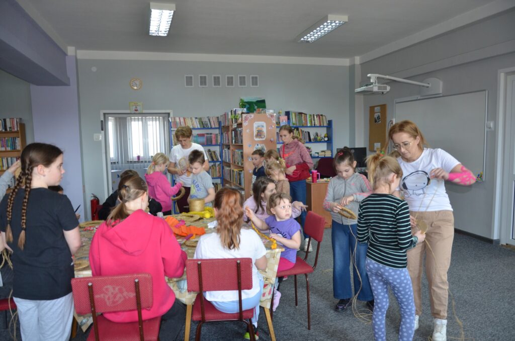 Podczas warsztatów wielkanocnych dzieci i młodzież z ogromnym zaangażowaniem tworzyły własne stroiki wielkanocne. Było kolorowo, kreatywnie i bardzo radośnie – każdy stroik był wyjątkowy i wykonany z sercem.