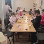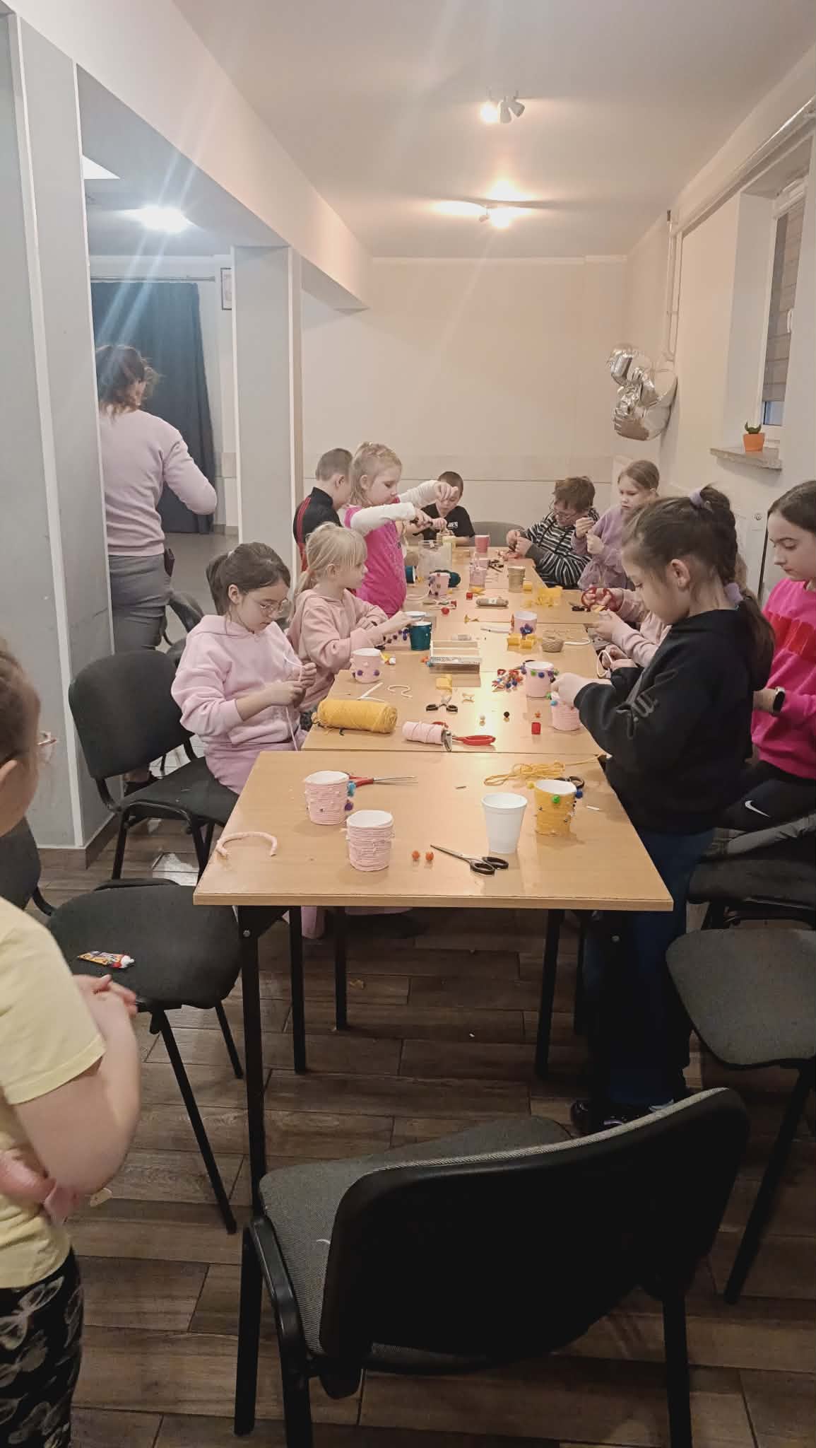 Kiedy wróciliśmy do biblioteki, zabraliśmy się za prace plastyczne. Tym razem dzieci robiły koszyczki z papierowych kubeczków. Owijanie włóczką i ozdabianie sprawiło im dużo frajdy, a efekt końcowy był naprawdę kolorowy i pomysłowy.