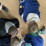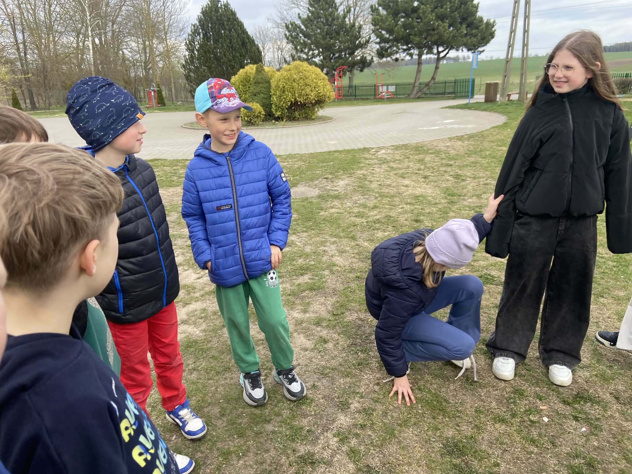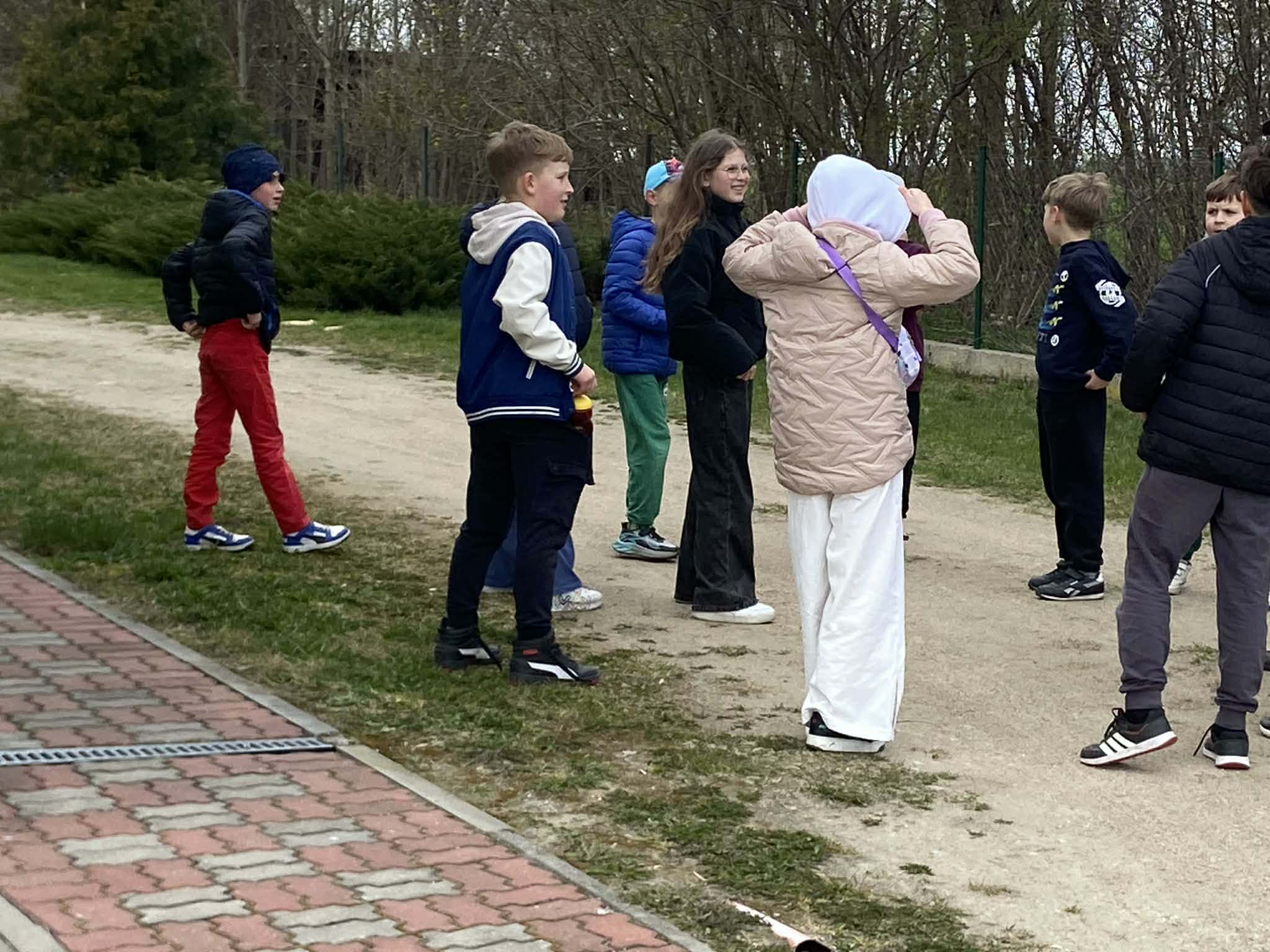 Na początku dzieci wzięły udział w zabawie ruchowej na świeżym powietrzu. Głównym zadaniem było odnalezienie ukrytej „bomby”, do której prowadził specjalnie przygotowany tor przeszkód. Uczestnicy musieli wykazać się sprawnością, sprytem oraz umiejętnością współpracy, pokonując kolejne etapy zadania. Zabawa wzbudziła wiele emocji i zaangażowania, a dzieci chętnie wspierały się nawzajem.